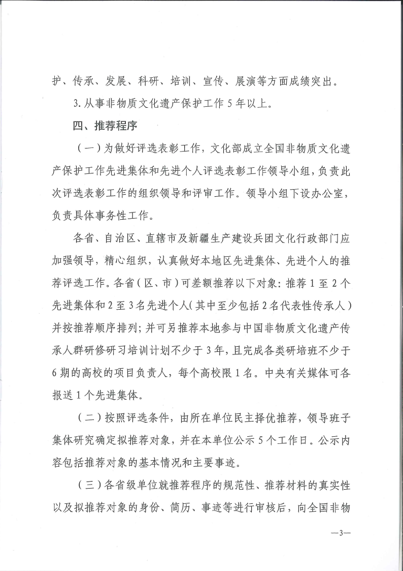 福建省文化厅关于转发文化部关于评选全国非物质文化遗产保护工作先进集体和先进个人的通知