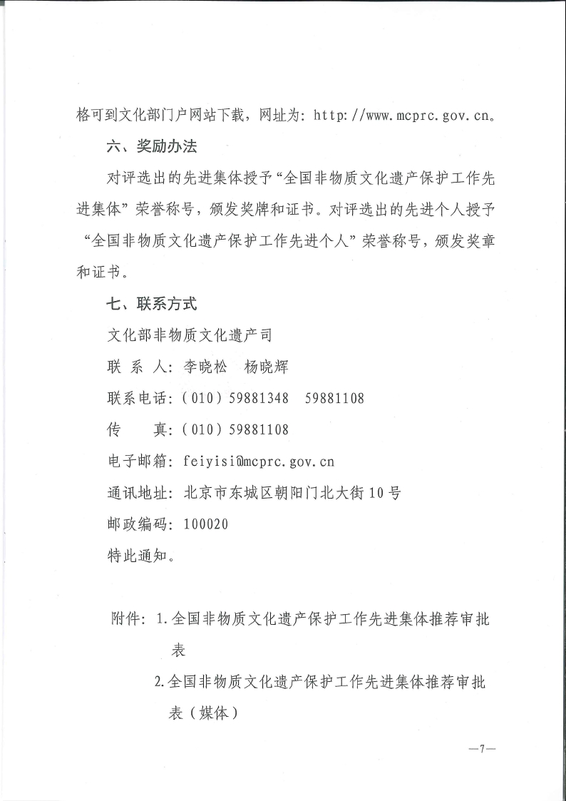 本表是全国非物质文化遗产保护工作先进集体推荐用表,必须如实填写,不得作假,违者取消评选资格;